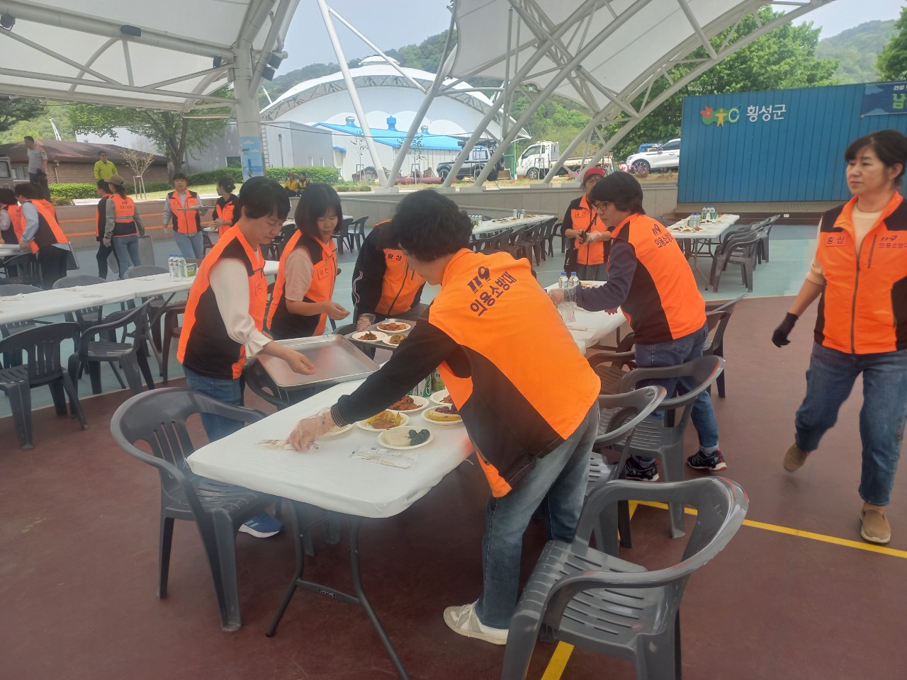 이날 행사에 참여한 60여명의 의용소방대원들은 기념식 준비에 동참하고 행사에 참석한 장애인의 1:1 동행 및 휠체어 보조로 도우미 역할을 자처하였으며, 참석자 위안잔치의 급식봉사를 준비하였다.