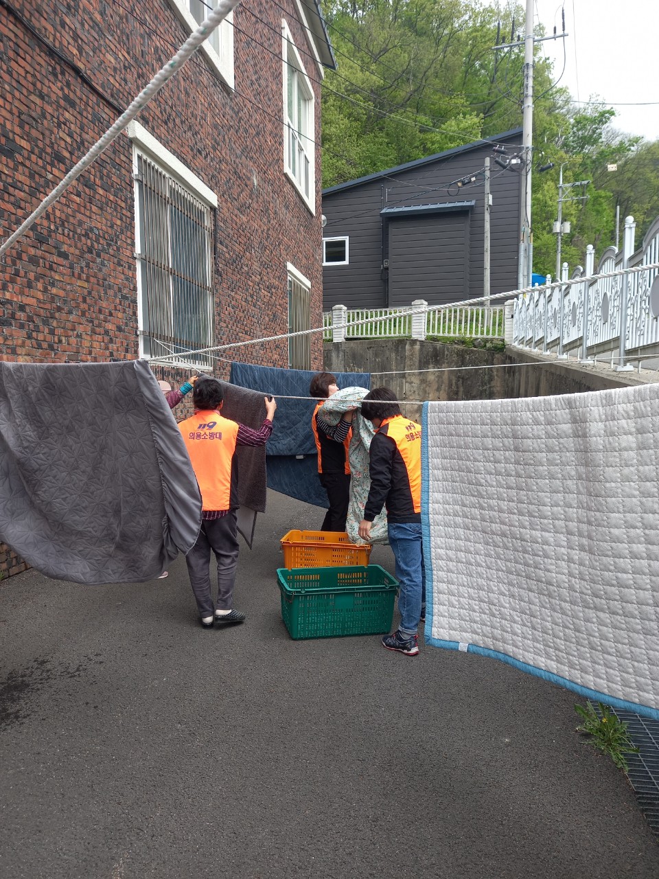 횡성소방서(서장 박순걸) 서원여자의용소방대 관내 어르신들의 이불을 세탁하고 볕에 바싹 말려