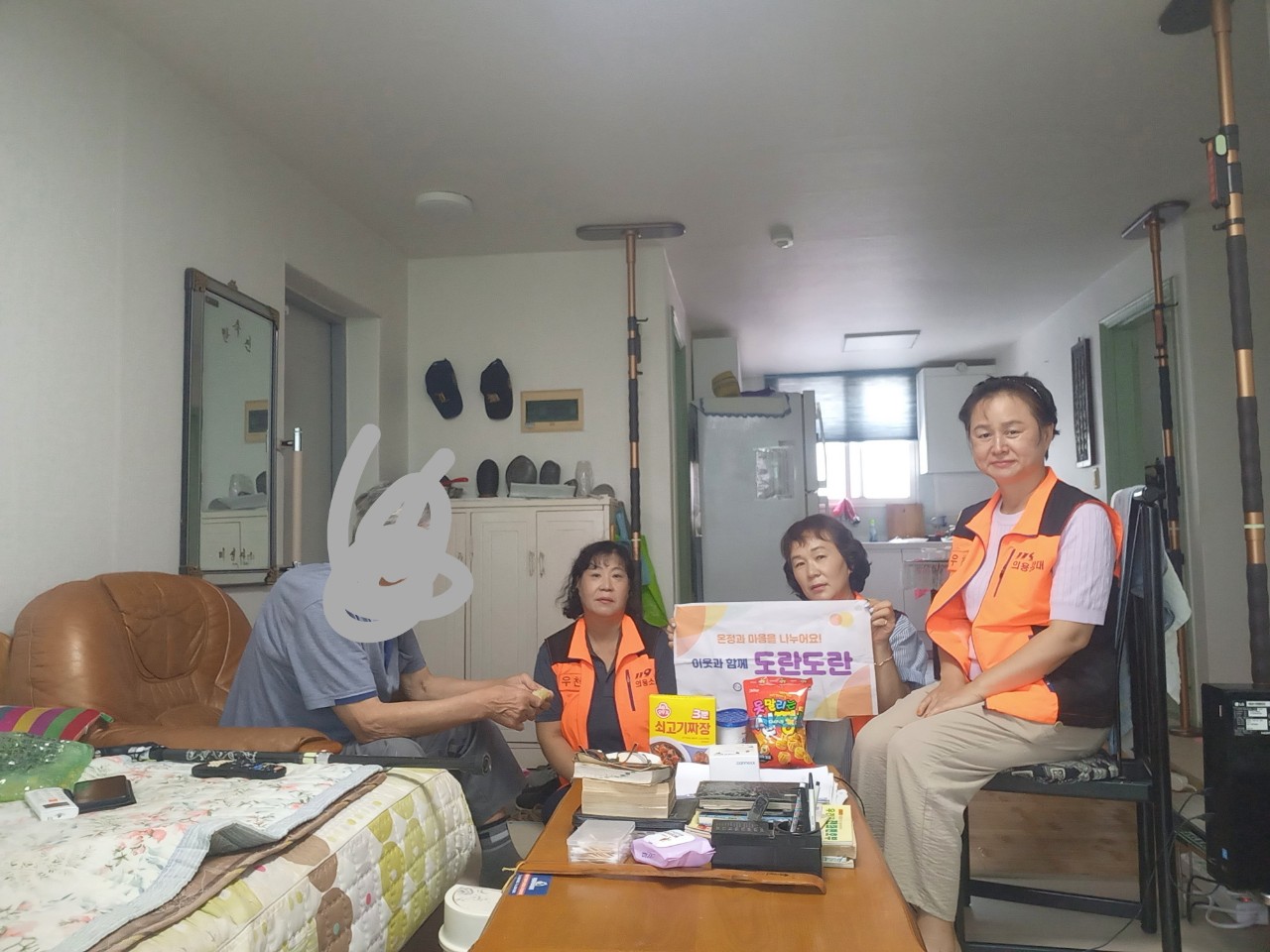 우항리아버님은 허리가 아프시다고 하시네요~저희들을 반갑게 맞아주시고 준비한 물품을 전달해드리며 과자는좋아히시나요?했더니 아무거나 잘드신다고 하시면서 잘 챙겨 먹어야 건강하시다고 하시네요