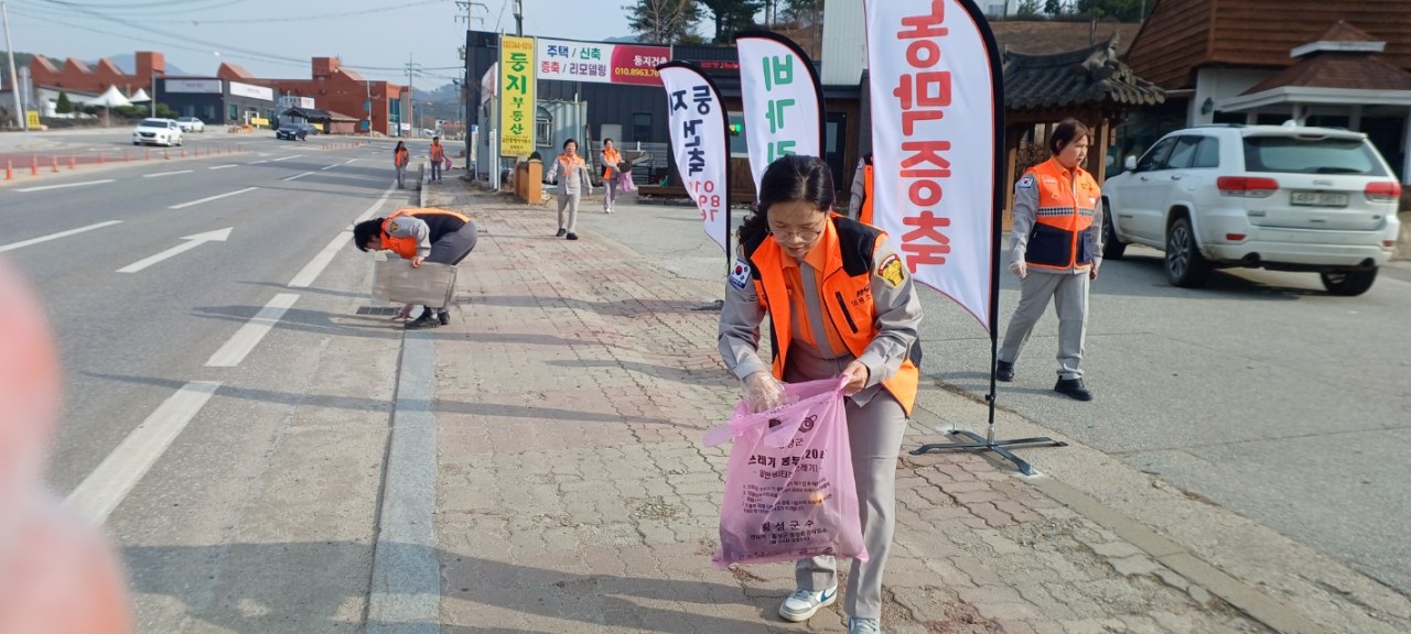 3월 24일 우천여성의용소방대는 우천면 새말탑 일대에서 환경정화활동을 실시하였습니다.