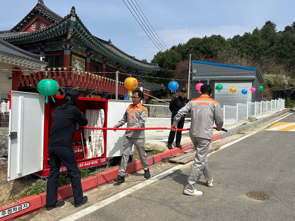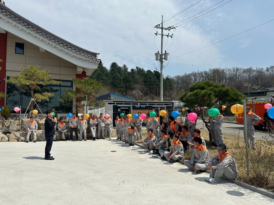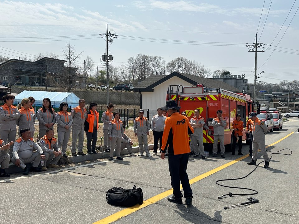 4월 16일 의용소방대 산불진화기동대원들이 산불위험이 높은 산림인접 마을과 광제사 앞 횡성비소함022호 일대에서 특별교육을 받았습니다.