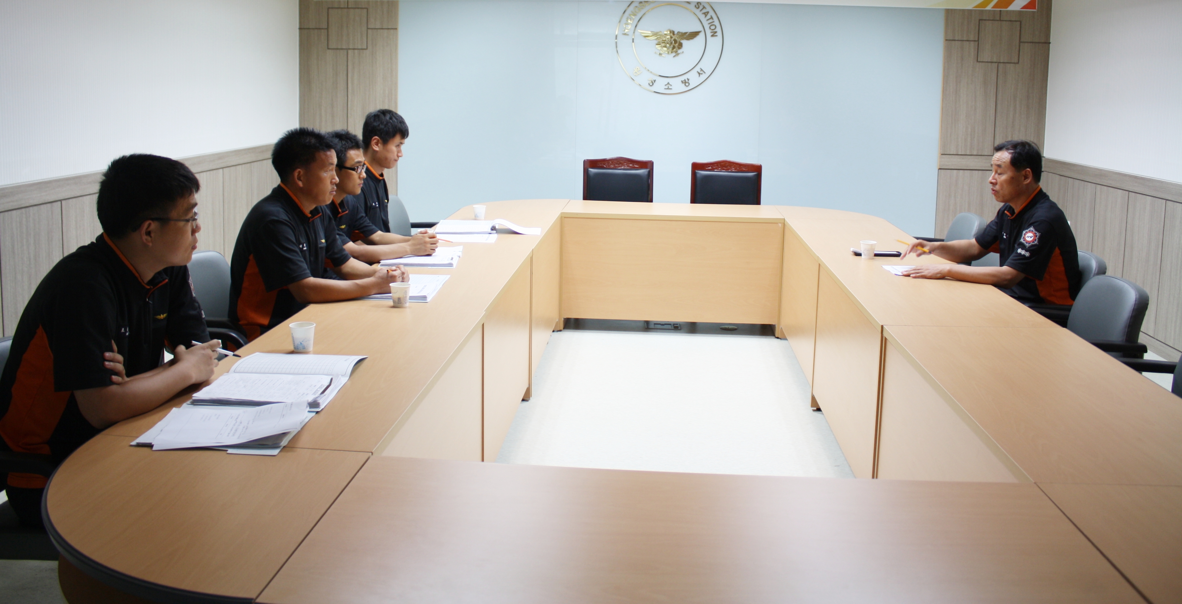 각 센터에서 진행중인 소방장비점검에 대해 소방행정과장과 장비담당자 및 소방차량 운전자는 소방장비점검 개선에 대해 의견을 나누고 있습니다. 앞으로 소방의 발전을 위해 한 걸음씩 다가가는 모습입니다.