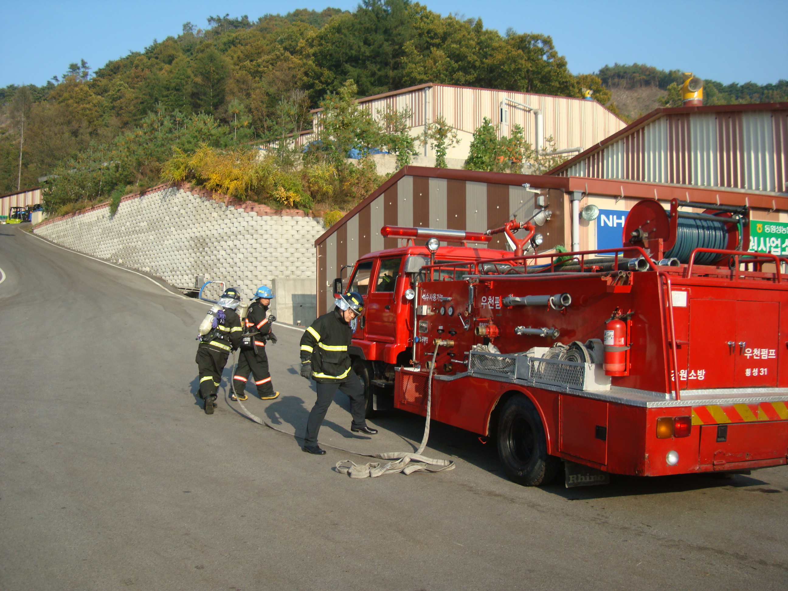 횡성소방서(서장 조근희) 우천119안전센터에서는2011.10.13 우천면 양적리에 위치한 동횡성농협공동자원화사업소 현장적응출동훈련을 실시하였습니다. 현장까지 최단거리 숙지 와 화재진압훈련 및 관계자와 업소직원을 대상으로 화재시 비상대피방법,소화기사용법등을 교육하였습니다.
