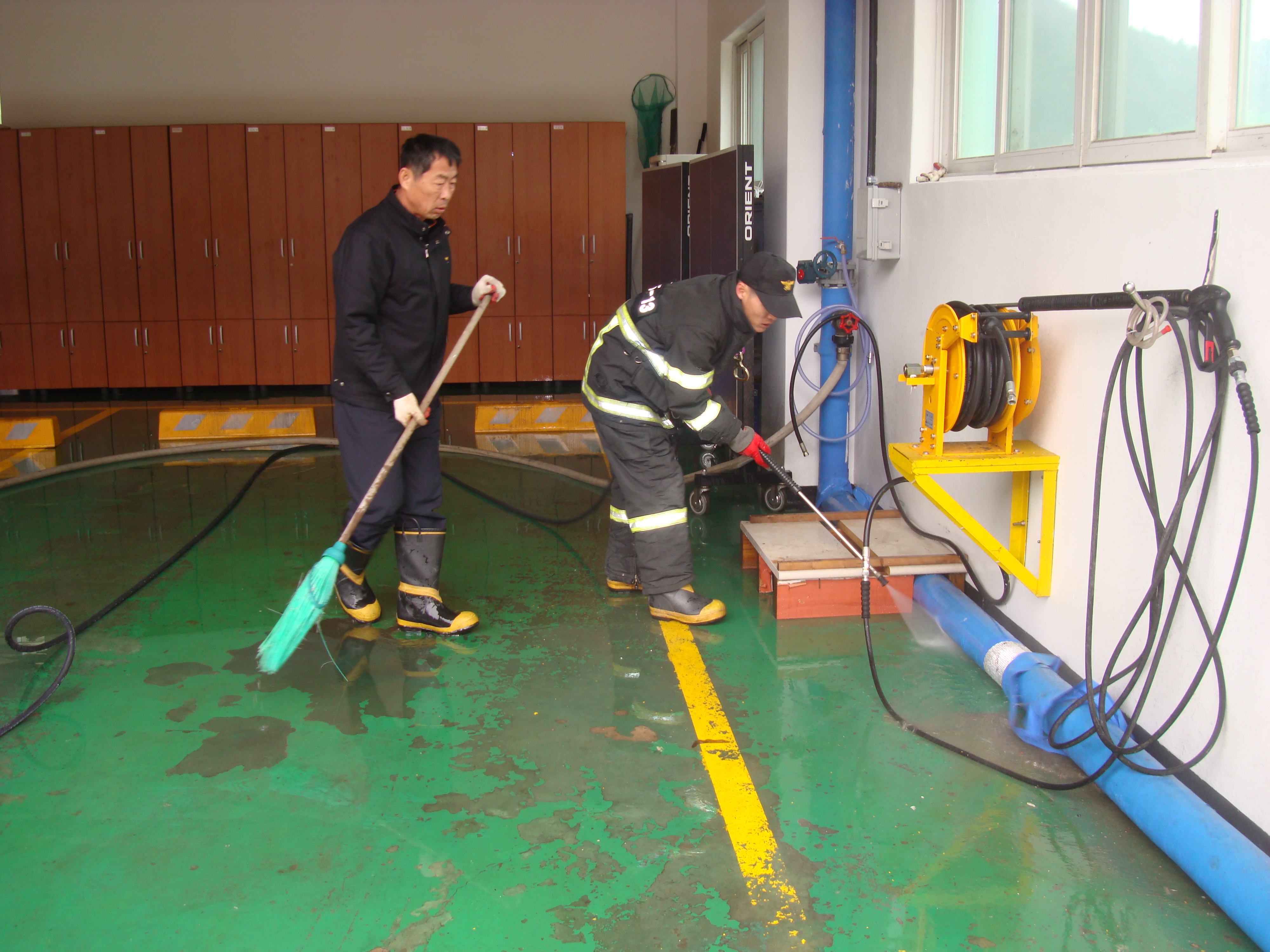 횡성소방서(서장 조근희)둔내119안전센터에서는 2012.03.02(금) 집무검열을 맞아 센터장님을 비롯한 전 직원들이 하나된 마음으로 청사환경정리 및 차량 정비점검을 실시하였습니다.
