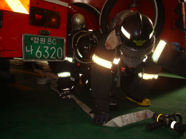 횡성소방서(서장 조근희) 우천119안전센터에서는 2012.04.13 지하실 화재를 대비하여 가상 농연 검색훈련을 실시하였다.