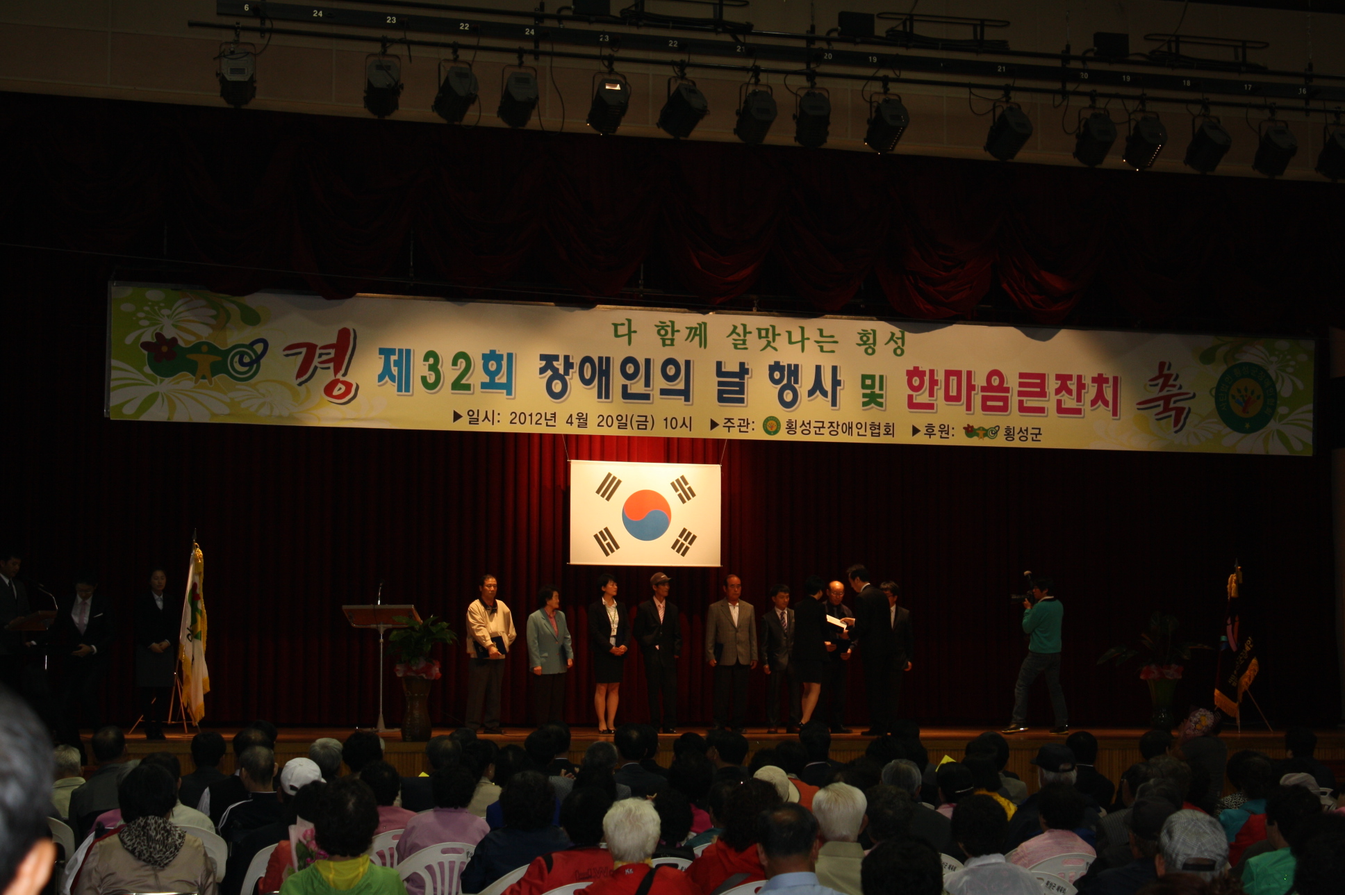 횡성소방서(서장 조근희)는 4월 20일(금)10:30분경 횡성실내체육관에서 제32회 장애인의날 기념식 및 한마당 참석. 장애인의날은 국민의 장애인에 대한 이해를 깊게 하고, 장애인의 재활의욕을 고취하기 위한 목적으로 제정된 기념일이며 매년 4월 20일, 1972년부터 민간단체에서 개최해 오던 4월 20일 ‘재활의 날’을 이어, 1981년부터 나라에서 ‘장애인의 날’로 정한날입니다. 기념식은 장애인 인권선언문 낭독, 장애인 복지유공자 포상, 장애인 극복상 시상, 장애인 수기 발표, 축하공연 등으로 진행되며 이 날을 전후한 약 일주일간을 ‘장애인 주간’으로 정하고 여러 가지 행사를 진행하고있습니다.