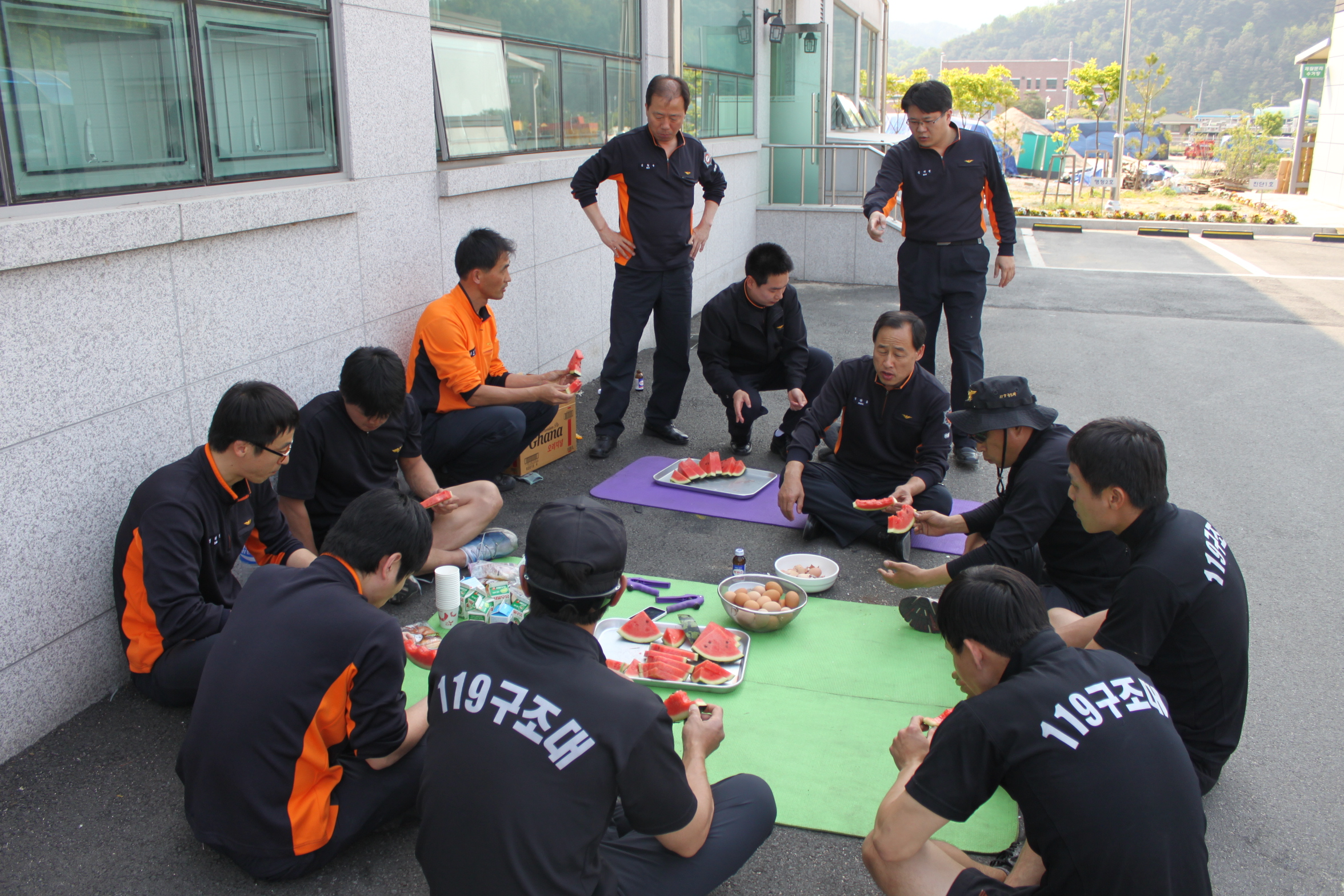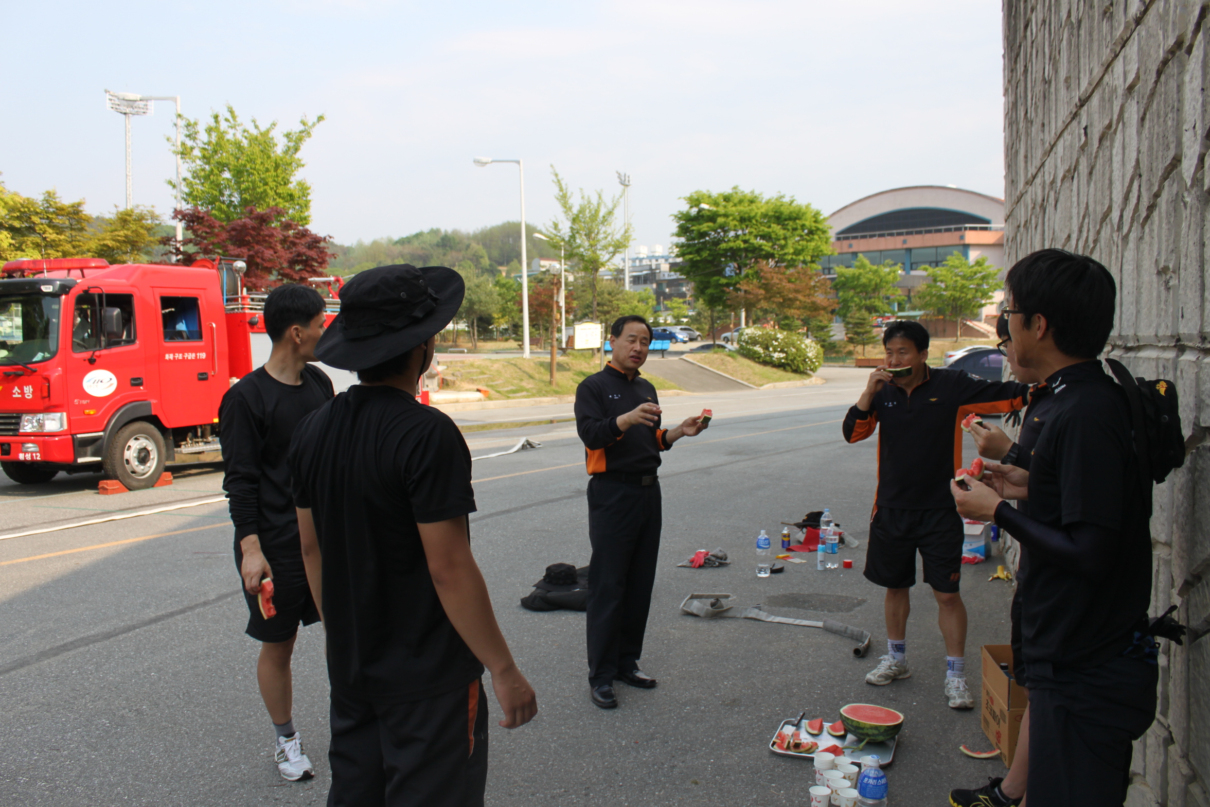 횡성소방서(서장 조근희)는 5월8일 소방기술경연대회참가 선수들이 훈련하는 훈련장에 소방행정과(과장 박찬흥)에서 격려방문으로 선수들의 사기를 진작시켰습니다.