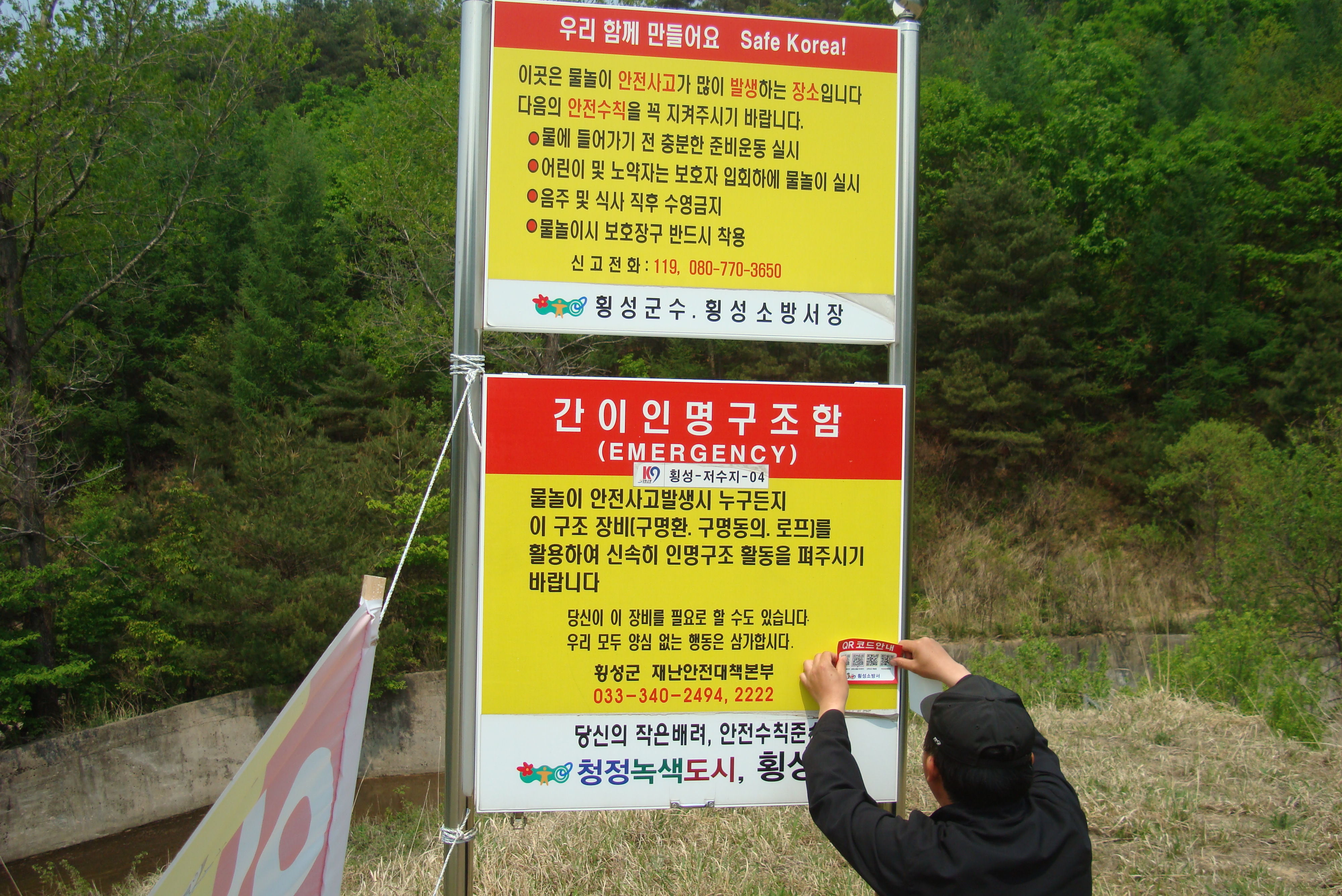 횡성소방서(서장 조근희) 둔내119안전센터에서는 수난사고 예방을 위하여 관내 저수지 인명구조함 점검 및 QR코드 스티커를 부착하였습니다.