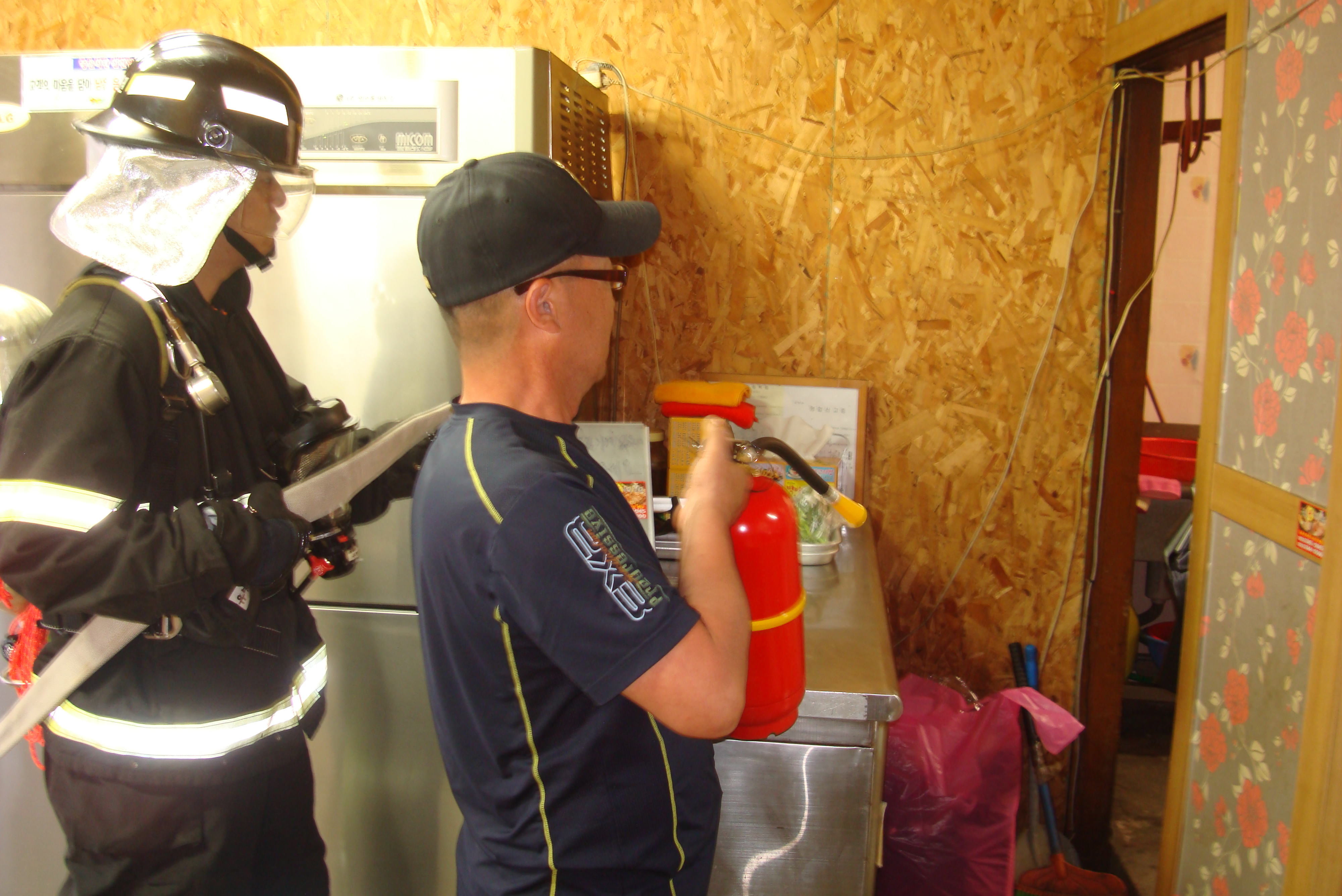 화재진압 및 인명대피 훈련을 실시한 후 소화기 사용법 교육 및 관계자 소방안전교육을 실시하였습니다