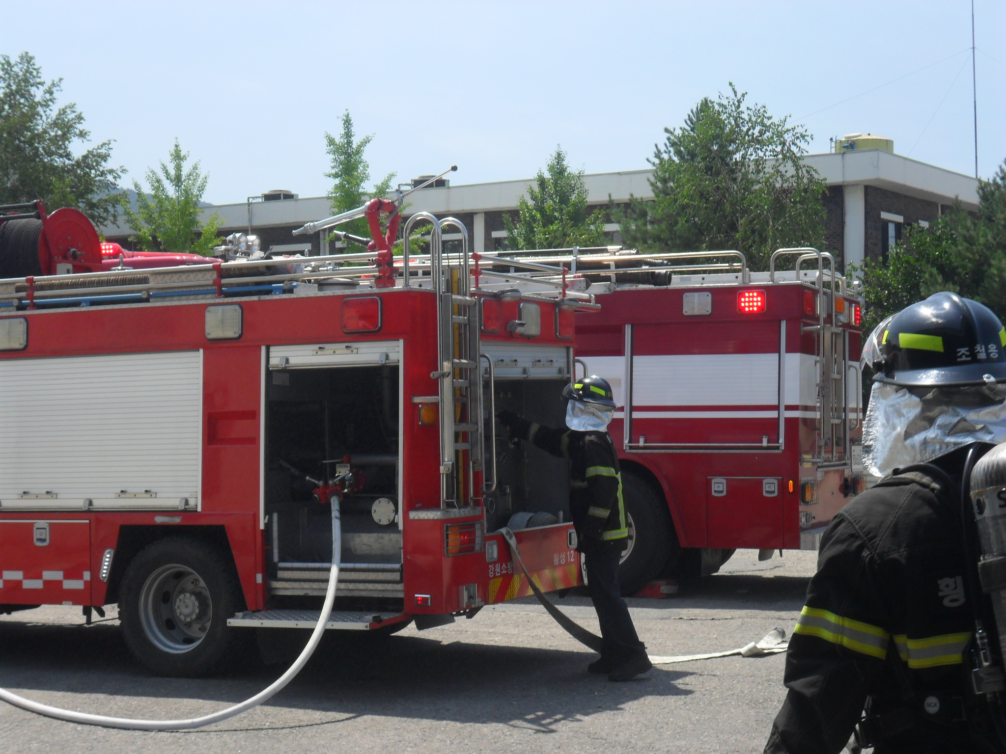 무더운 여름에도 소방훈련은 계속된다.