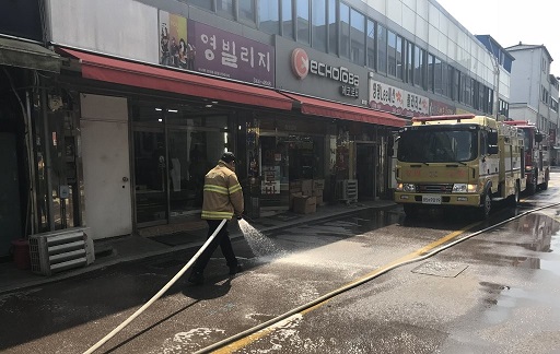 횡성 관내 도심, 주택가 골목길과 경로당 주변 등을 대상으로 물 뿌리기를 진행했다.