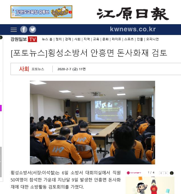 횡성소방서(서장:이석철)는 6일 소방서 대회의실에서 직원 50여명이 참석한 가운데 지난달 9일 발생한 안흥면 돈사화재에 대한 소방활동 검토회의를 가졌다.