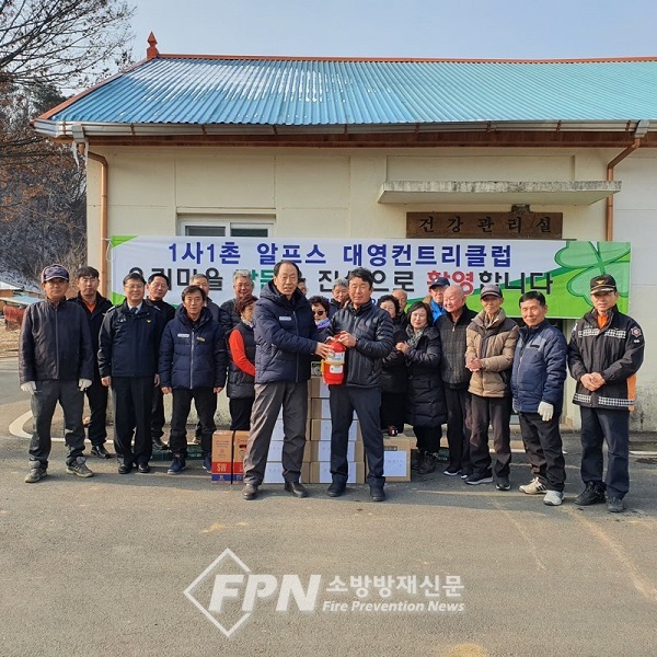 이날 소방서뿐 아니라 회사 임직원과 마을 관계자 등 총 50여 명은 알프스대영컨트리클럽에서 우천면 마을 총 20가구에 소화기 20개와 감지기 20개를 기부했다. 이들은 소ㆍ소ㆍ심 교육도 병행했다.