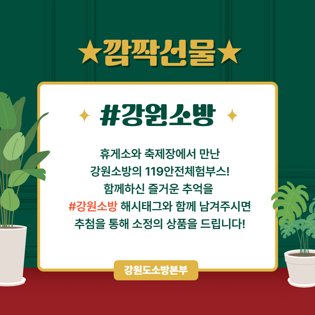 횡성소방서(강릉방향)에서 14시에 만나서 체험하고 선물도 받아가세요! :)