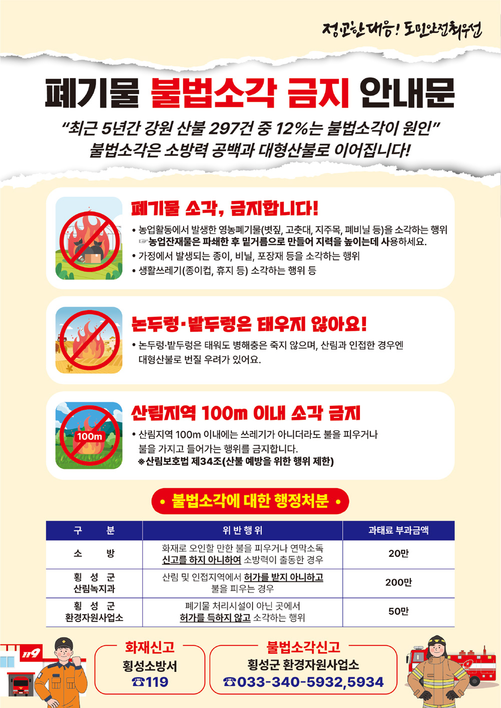 폐기물 불법소각 금지 안내문