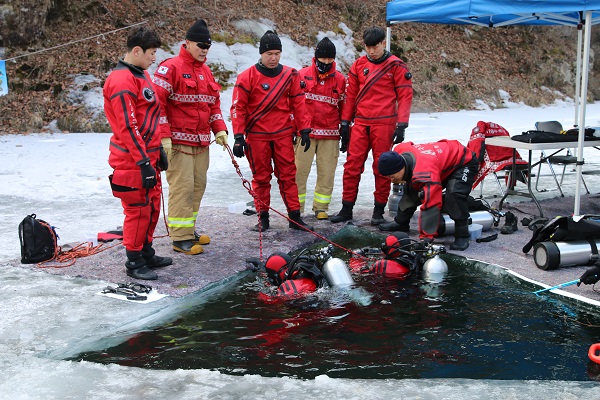 구조대원과 의용소방대원 50여명이 참석한 가운데 “동계 수난사고 특별구조훈련”을