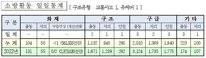 ○ 구급 3건(이송 2, 미이송 1)