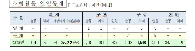 ○ 구조 1건(자연재해 1)