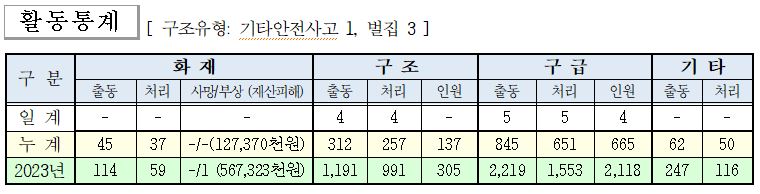 ○ 구조 4건(기타안전사고 1, 벌집 3 )