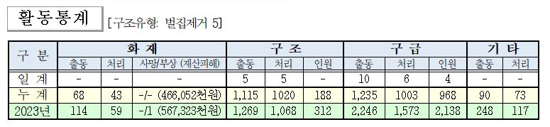○ 구조 5건(벌집제거 5)