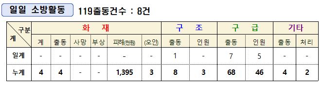인제소방서 일일소방상황(1. 15.)