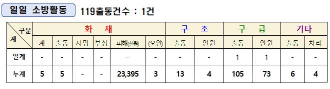 1. 25.(토) 소방활동 상황일보