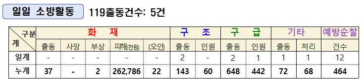 인제소방서 일일소방상황(5. 12.)