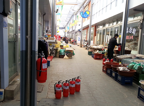 원통 재래시장 보이는 소화기 설치