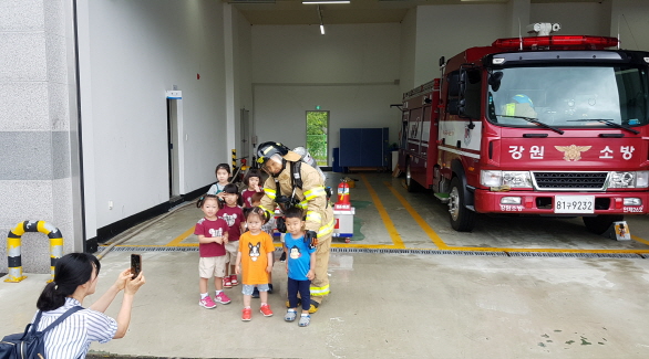 기린119안전센터에 방문하여 어린이 소방안전 및 소화기 사용법에 대하여 교육을 받고 돌아갔다.