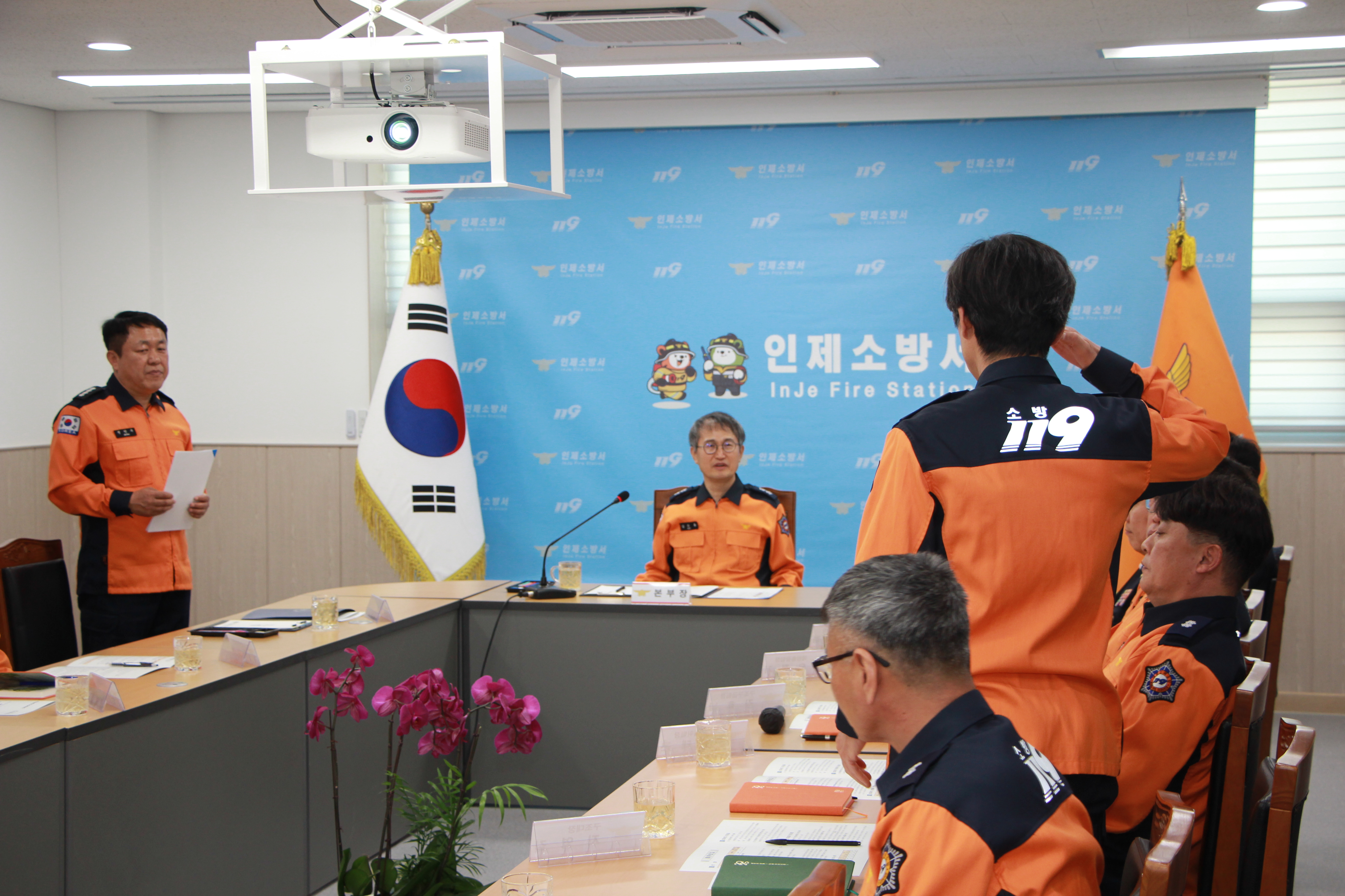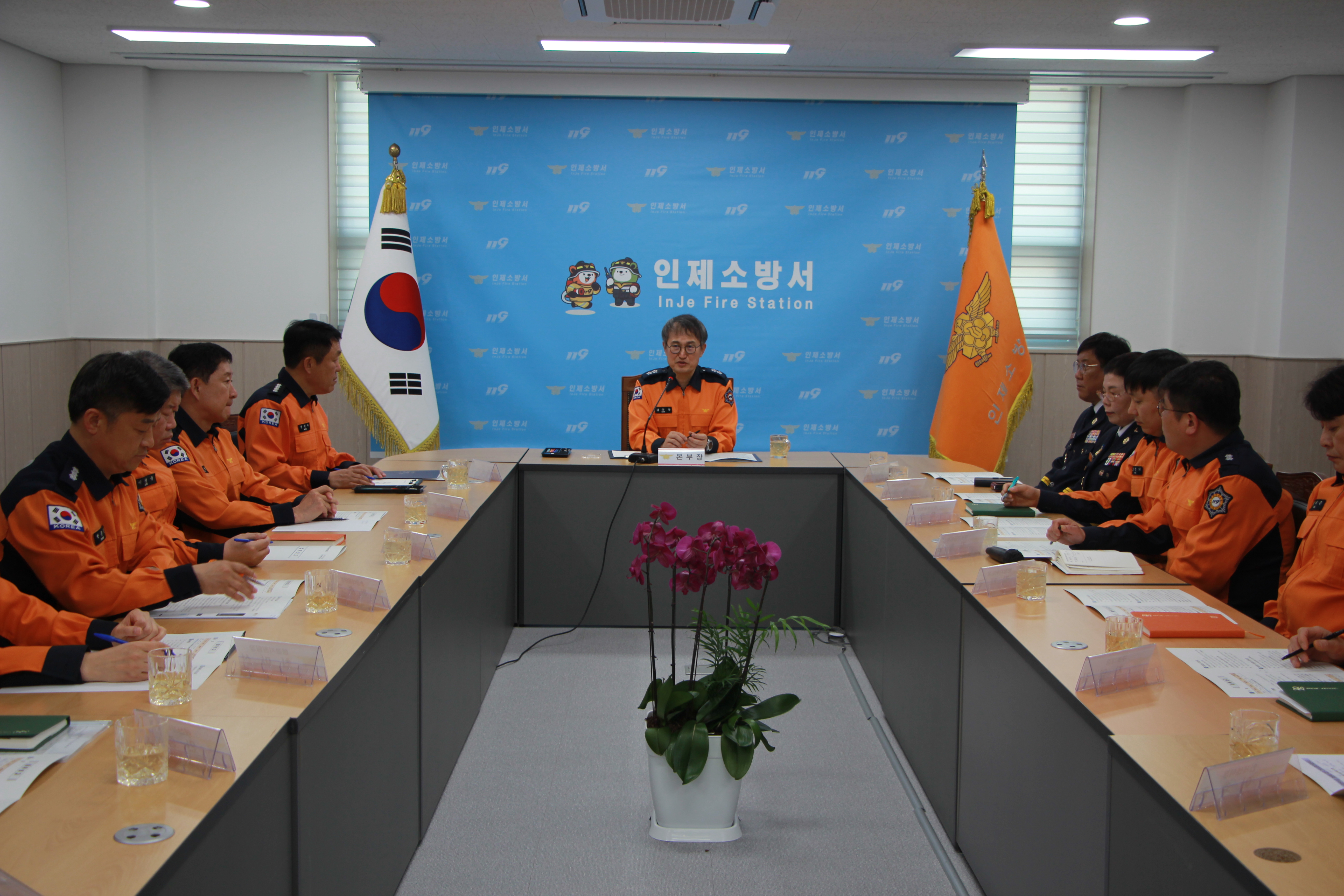 금일 인제소방서에 김승룡 강원소방본부장님이 방문하여 소방정책 추진 현안에 대해 소통하며 현장 소방대원들의 노고를 격려하는 시간을 가졌습니다.