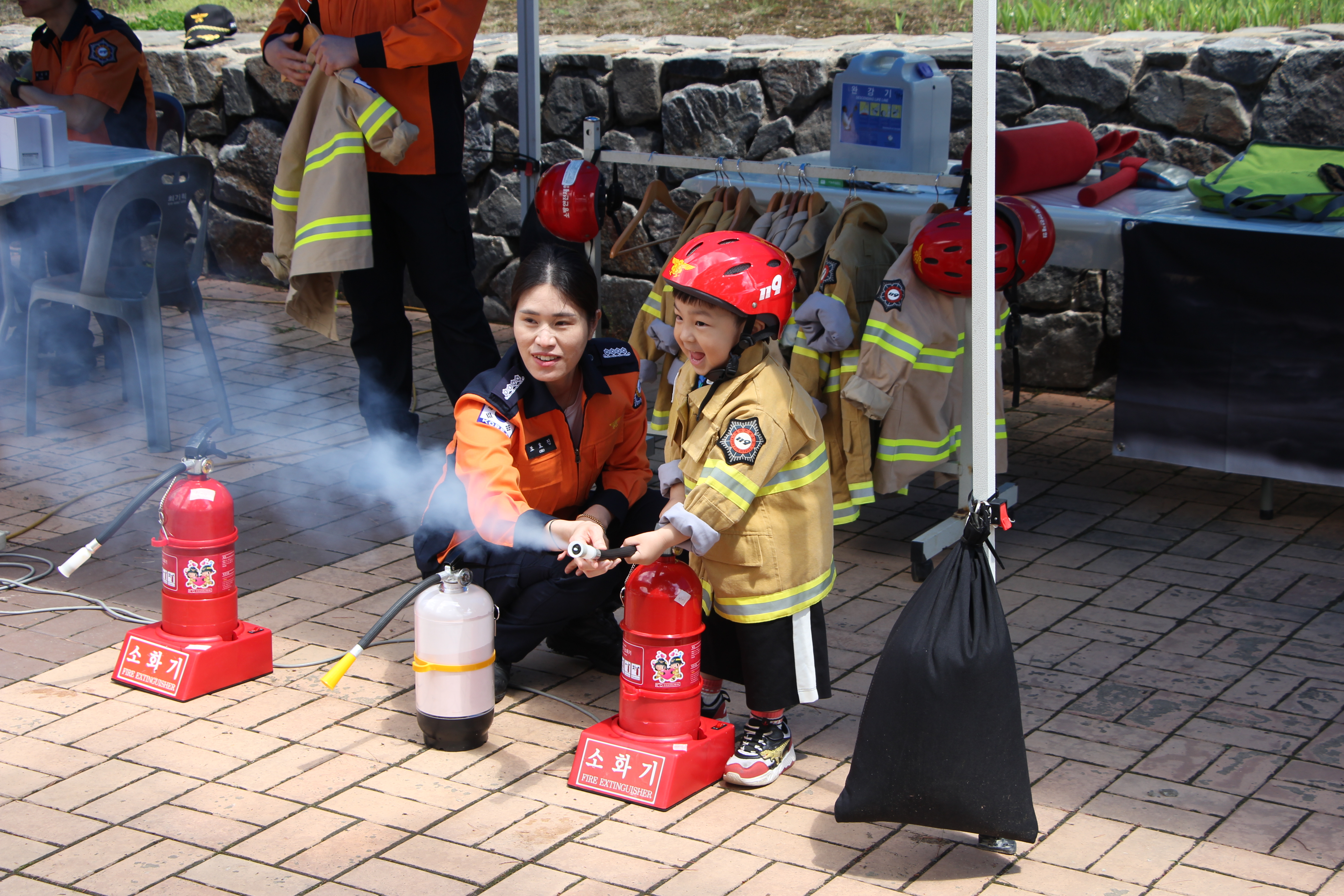 방화복 착용, 소화기 체험, 소화기 만들기, 소방차 만들기, 심폐소생술 교육 등 다양한 프로그램으로 진행되었습니다.