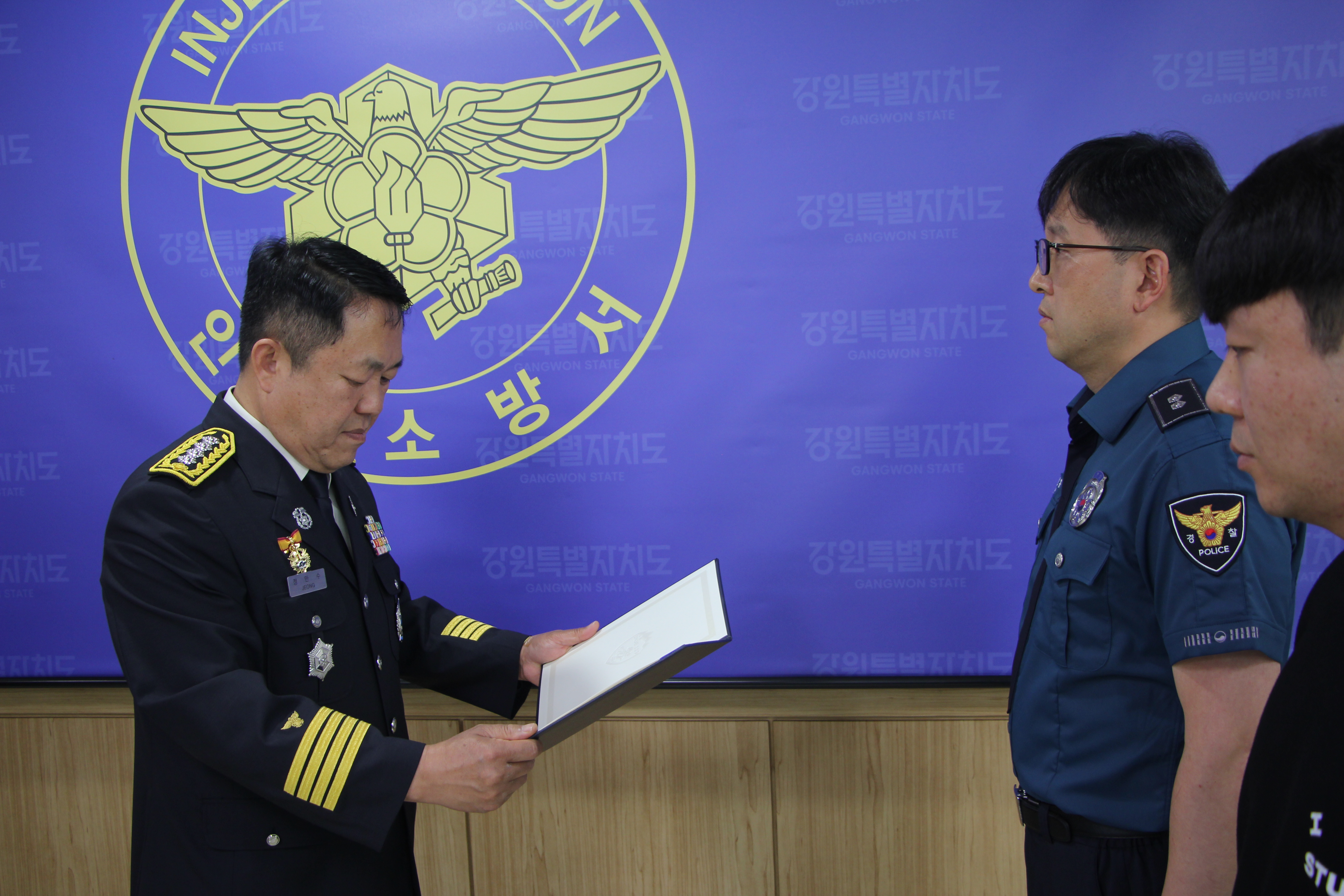 유공자는 인제경찰서 소속 김선홍 경감과 인제우체국 소속 이세진 우정서기보입니다.