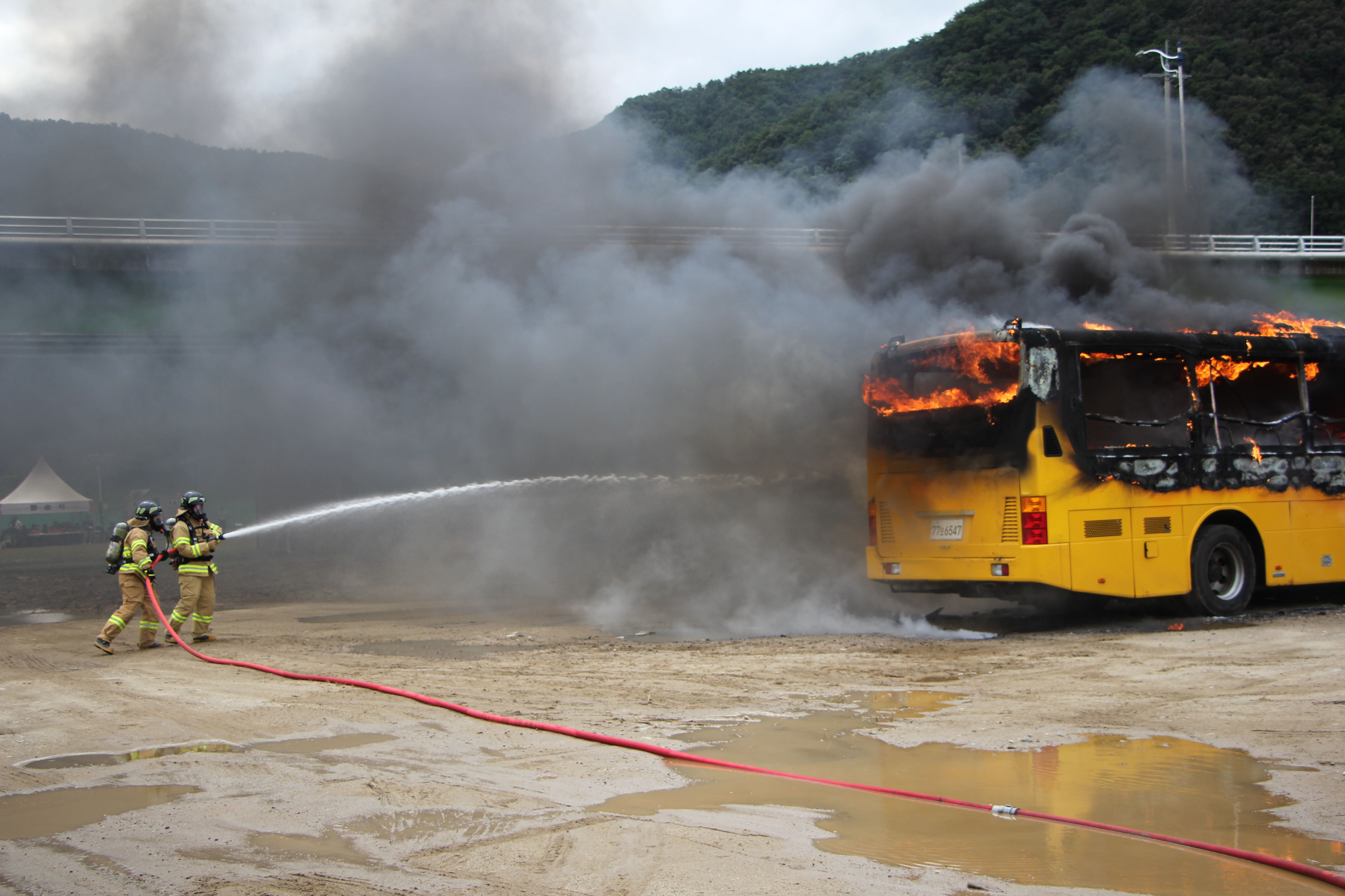 실화재를 동반한 훈련으로 버스 추락으로 인한 대형 화재 및 다수 사상자 발생 상황을 부여했습니다.