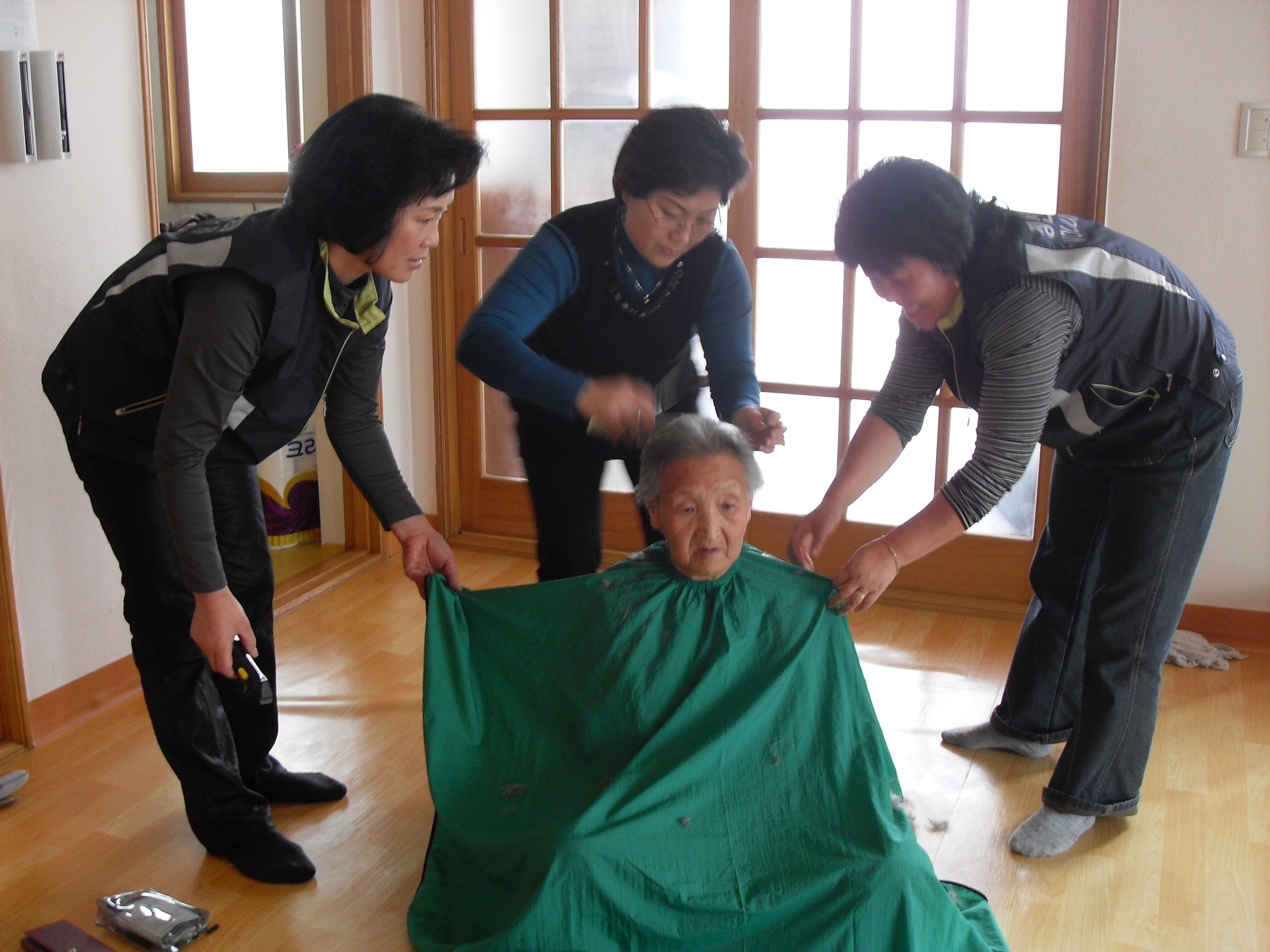 20일 송계2리 마을회관을 방문하여 30명대상으로 이,미용봉사 및 혈압체크, 마사