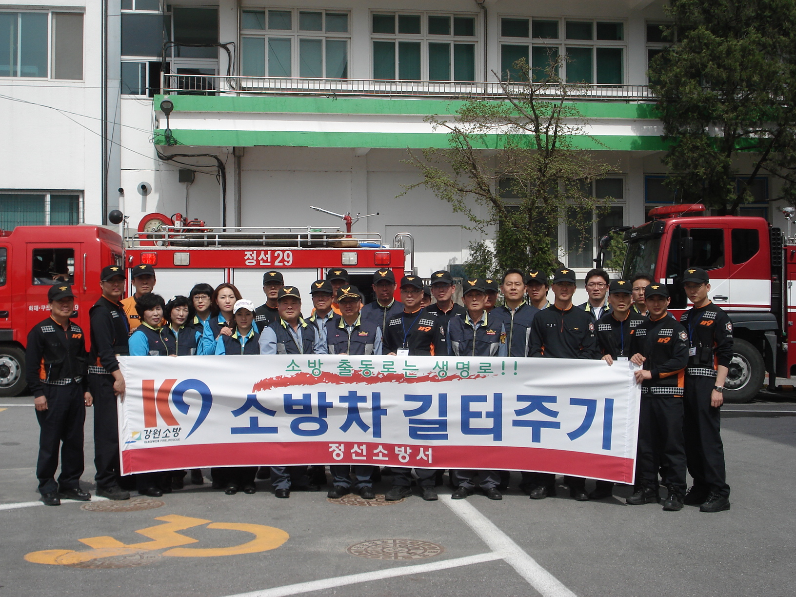 긴급대피훈련및 소방차길터주기캠페인을 실시하엿읍니다.