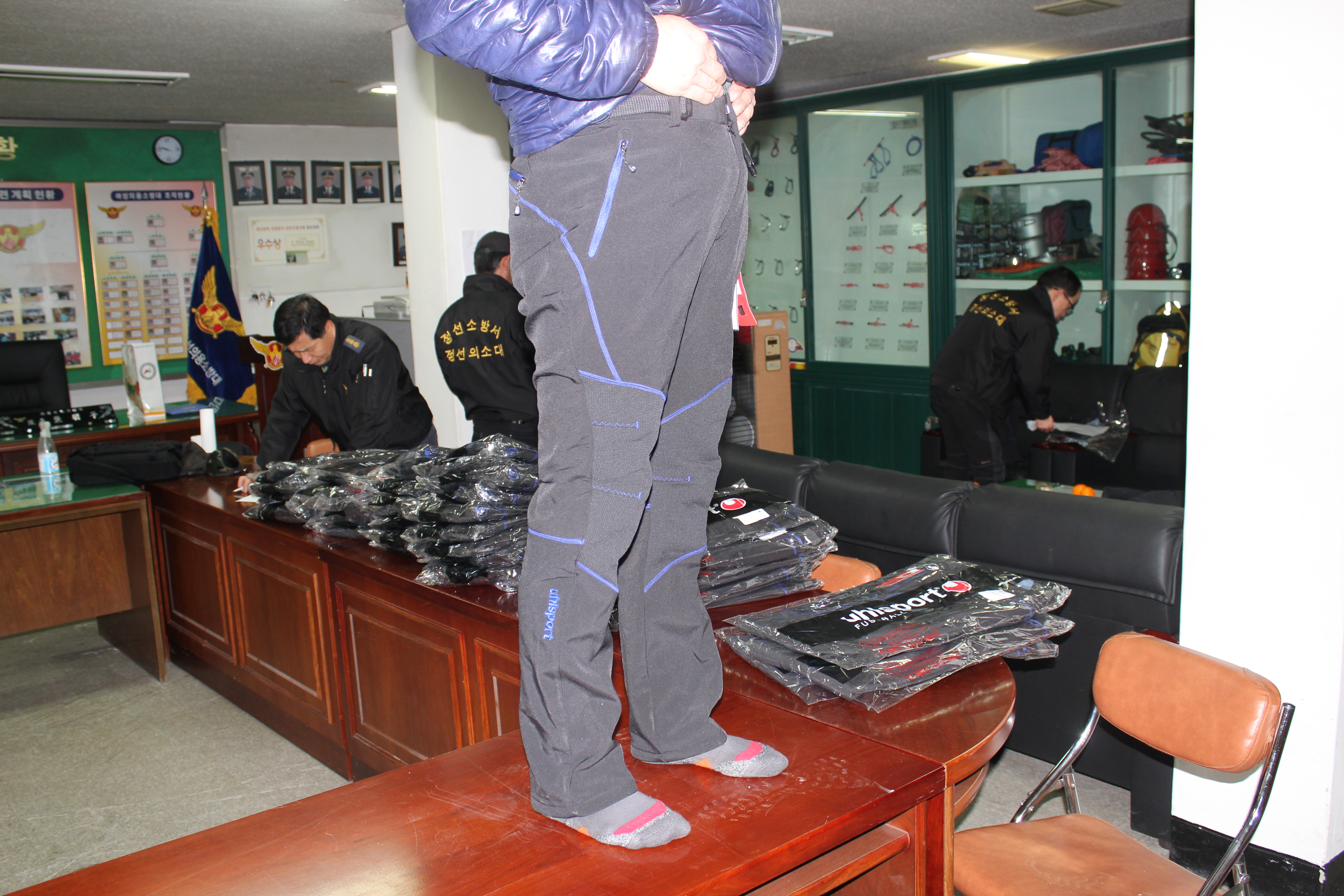 정선의용소방대(대장:박진호)는 야간대기근무 및 출동시 현 기동복바지보다 보온선이 뛰어난 방한용바지를 자체구입 전대원 50명에게 지급하여 보다나은 동계야간대기근무에 임하도록 하였습니다. 정선의용소방대 화이팅~~!!