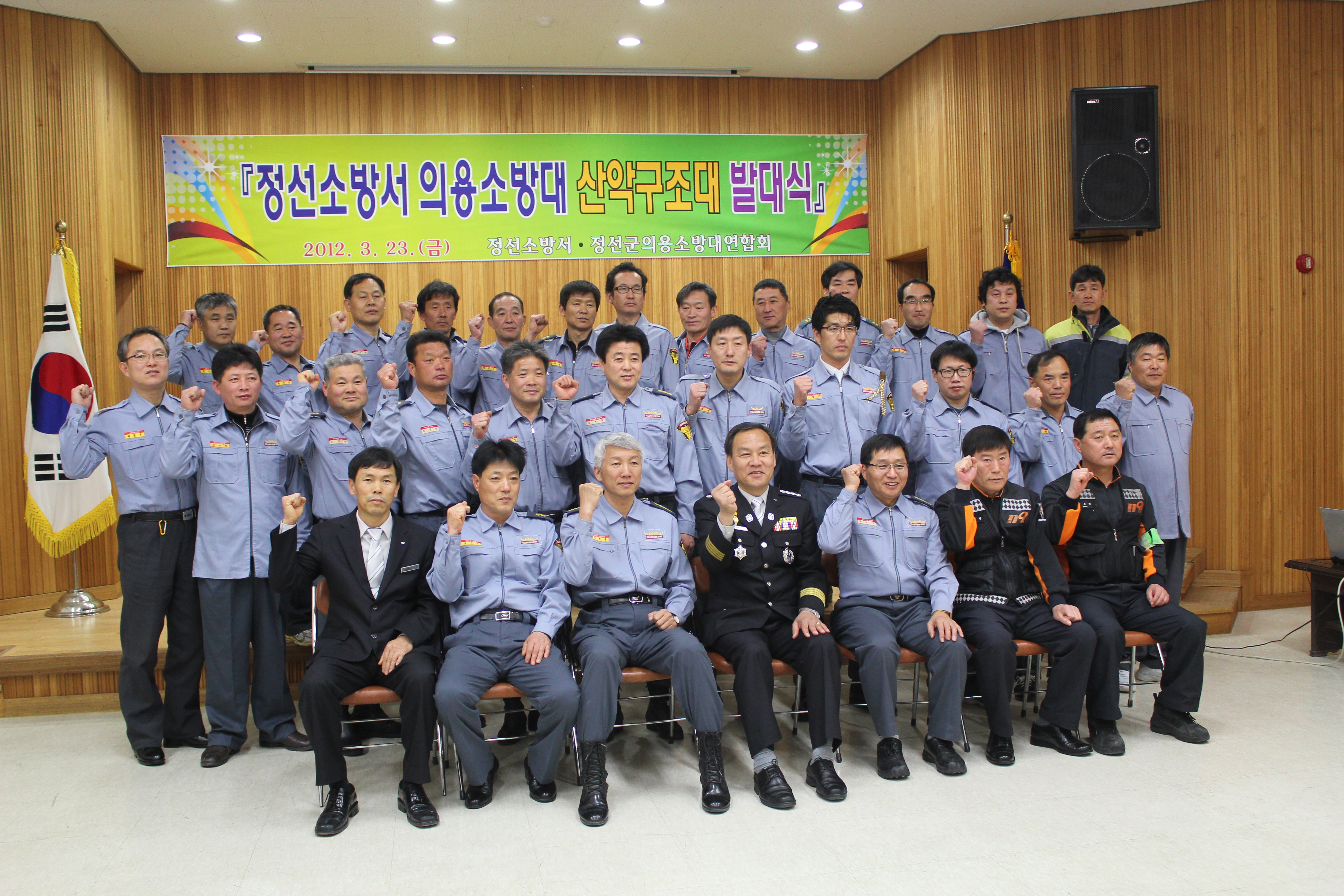 이번 발대식 및 특별교육은 『등산사고 5%감축』의 일환으로 정선군 산행인구 증가에 따른 지역사회 봉사자로서 의용소방대의 역할과 산악구조대원의 산악구조요령 및 안전수칙 등을 교육 했슴.