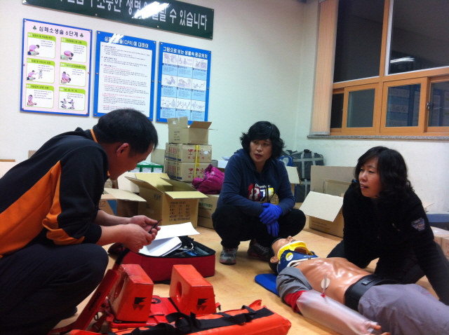 정선여성의용소방대(대장:윤춘희)에서는 4월 21일 남면 민둥산억새풀 축제장에서 개최되는 제35회 정선군의용소방연합회 소방기술 경연대회에 출전선수들의 담당교관과 부목연습을 하고 있다.