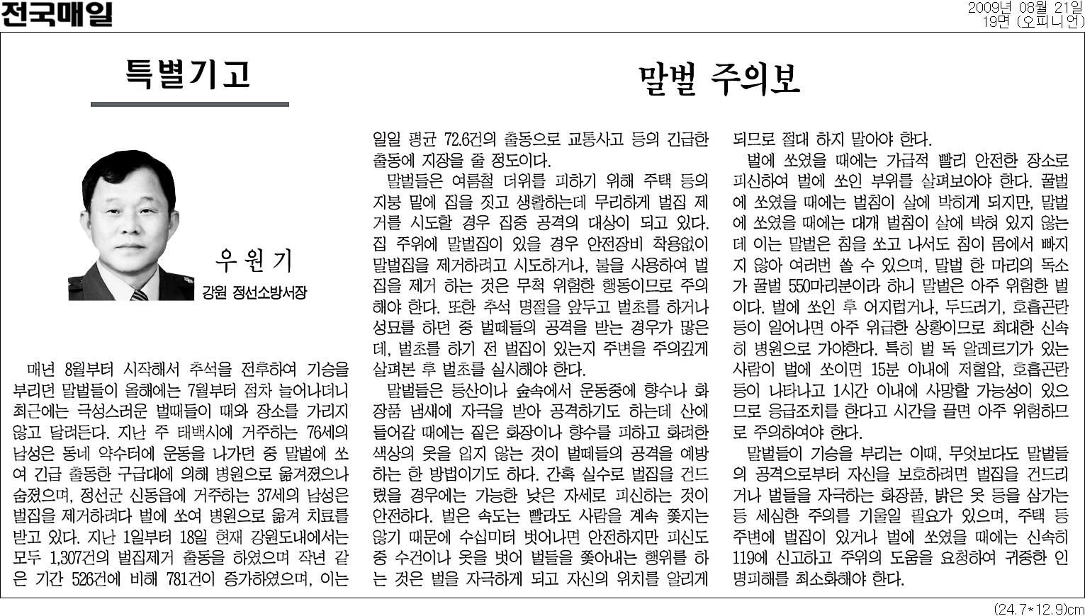 우원기 정선소방서장님의 특별기고문으로 첨부파일이나 내용을 클릭하시면 자세히 볼 수 있습니다.