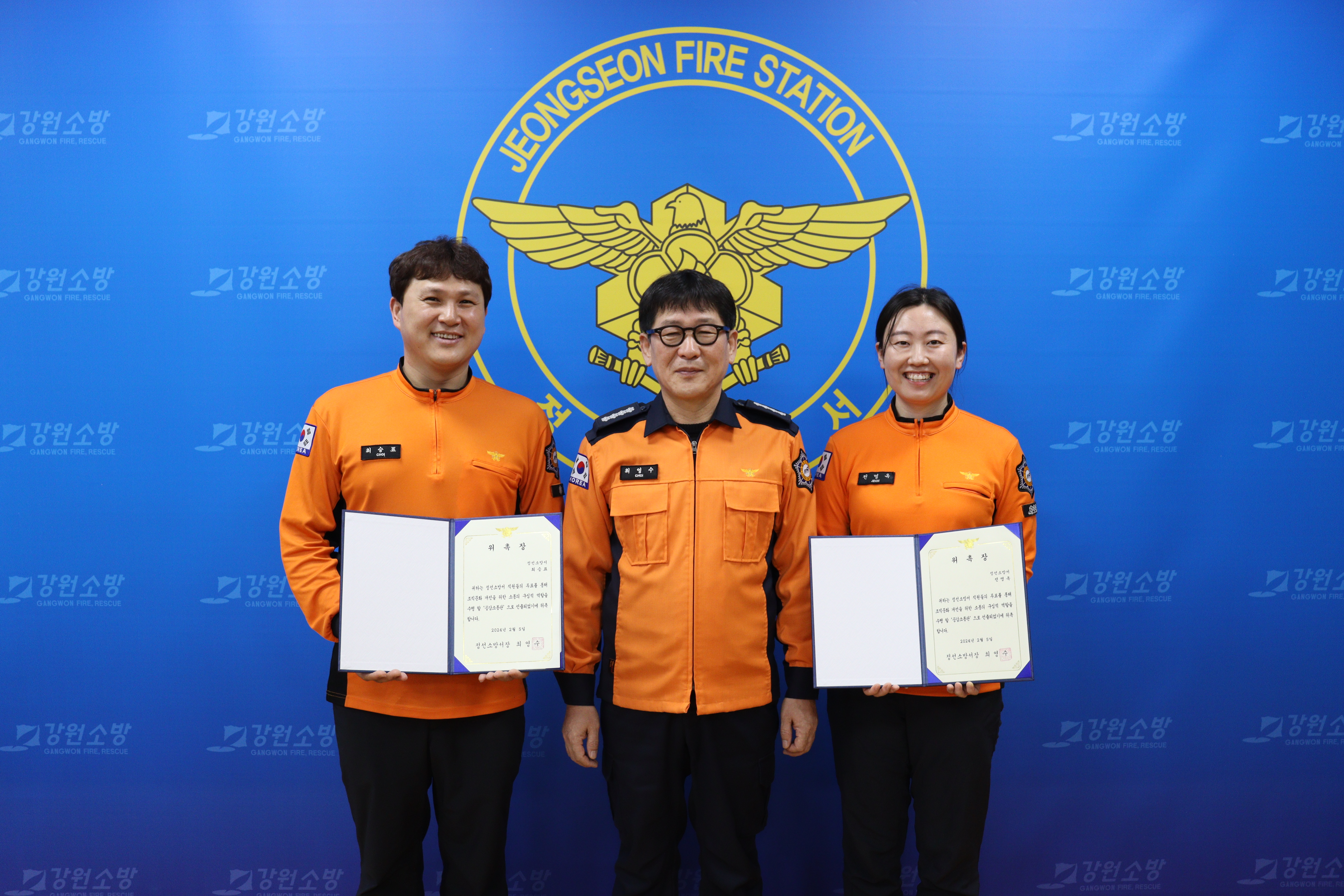 ➤정선소방서(서장 최영수)는 5일 2층 서장실에서 직원 간 소통의 역할을 수행하는 ‘공감 소통관’으로 소방행정과 소방위 최승표와 조양119안전센터 소방교 전명옥을 선발하여 위촉장을 수여했다.