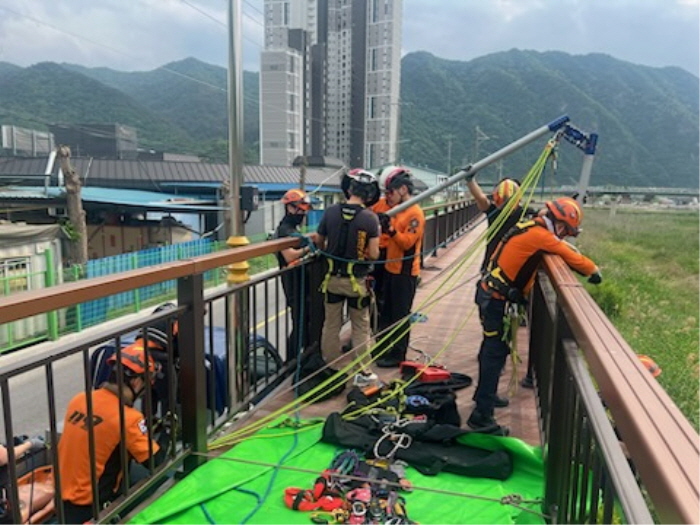 2025-05-22 정선소방서, 다목적 삼각대 활용 테크니컬 로프 레스큐 훈련 실시