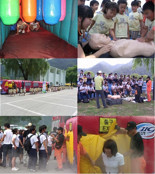 정선소방서(서장 우원기)는 2009. 8. 19(수) 14:00-17:00 정선공설운동장에서 어린이 등 200명을 대상으로 응급처치 및 재난체험을 실시하였다