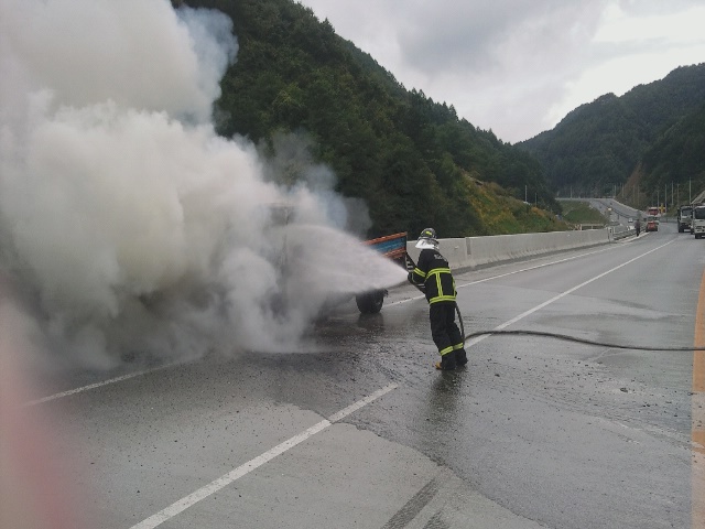 신동 - 남면간 자동차전용도로 마차재 정상 지점에서 9월 21일 오후 4시경 차량화재가 발생하였습니다. 화물차 주인은 불이 난줄도 모르고 주행하는데 뒤에 오던 차량이 신호를 보내어 신속히 화물칸에 있던 포크레인과 운전자가 무사히 탈출 할 수 있었습니다. 화물차량이 전소된것이 아쉽지만 인명피해가 없었으니 정말 다행입니다.