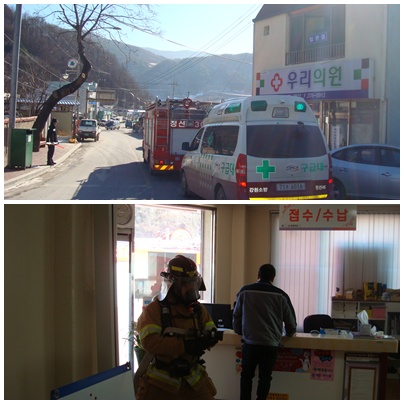 정선소방서(서장 이병광) 신동119안전센터(센터장 전상봉)에서는 26일 13시 신동읍 예미리 우리의원에 대해 현지적응출동훈련을 실시하였습니다.