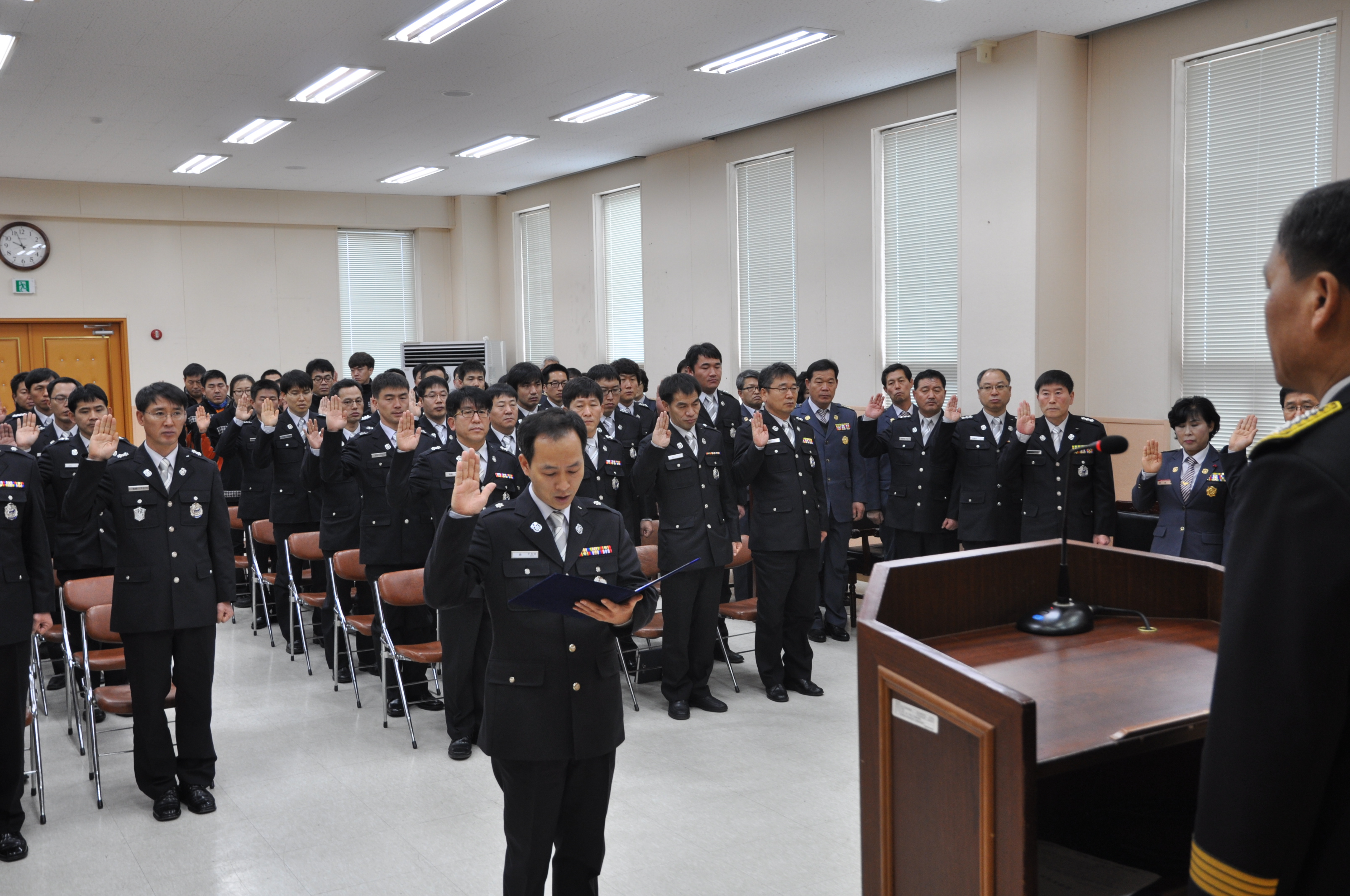 이날 시무식에서 박창진 서장은 「행복한 일터 만들기」, 「현장에 강한 소방관 육성」,「공정한 민원서비스 제공」, 「무사고 원년의 해 설정」, 「의용소방대 정예화」등의 비전을 제시하고 적 직원과 의용소방대원 모두가 함께 노력하자고 당부하였다. 또한 청렴한 공직수행을 위한 부조리 자정 결의도 다졌다.