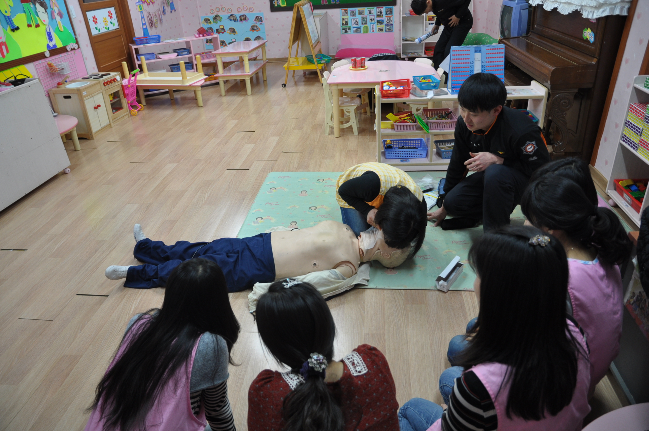 정선소방서(서장: 박창진) 정선119안전센터에서는 2012년1월17일 생명의 소중함 및 심정지환자의 소생률 향상을 위해 봉양어린이집에서 심폐소생술(CPR)교육을 실시하였습니다.