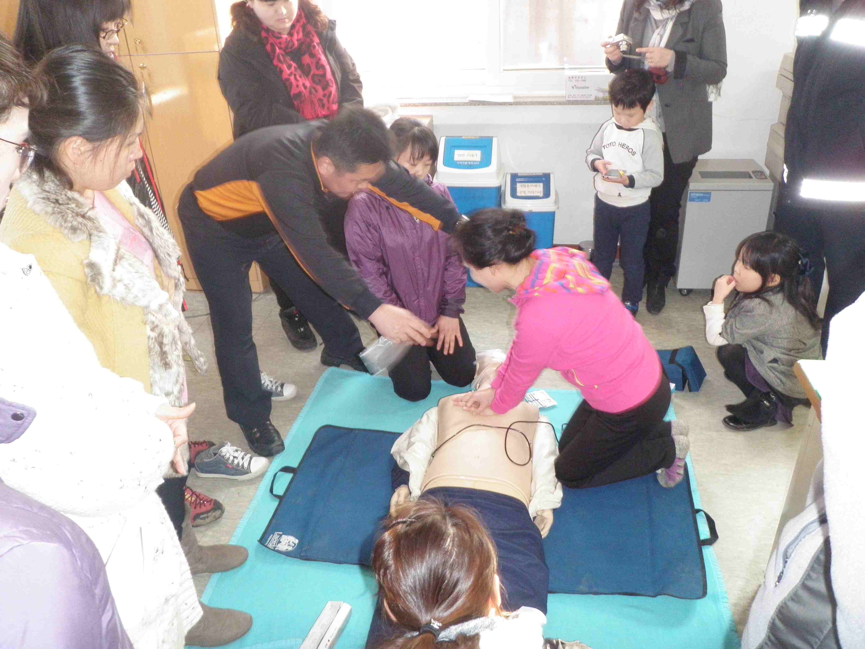 내용 : 성인애니와 영아애니를 활용한 심폐소생술 및 기도폐쇄환자 대응교육, AED 사용법 교육을 실시함