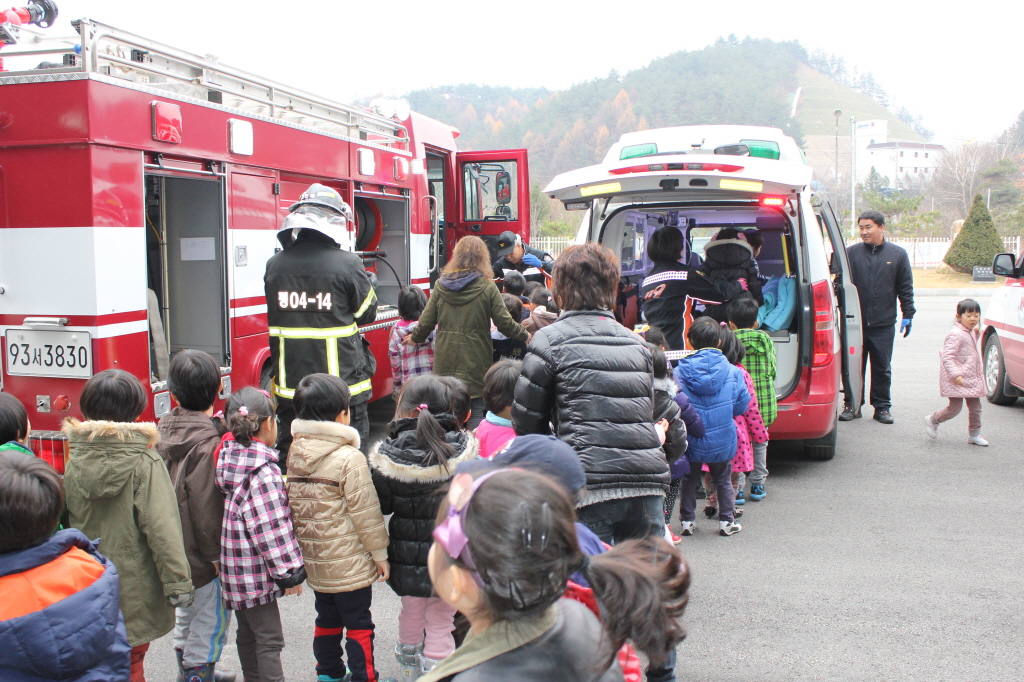 평창소방서(서장 김용락)에서는 11월 16일(금) 10시 평창소방서에서 용평면 장평리 메밀꽃유치원 119명(원생 107명, 교사12명)을 대상으로 소방서 견학 및 소방안전교육 및 심폐소생술 교육, 소방차량 체험을 실시하였다. 영상자료 시청 및 차량 견학 등을 통해 아이들에게 소방에 대한 좋은 추억을 만들었다.