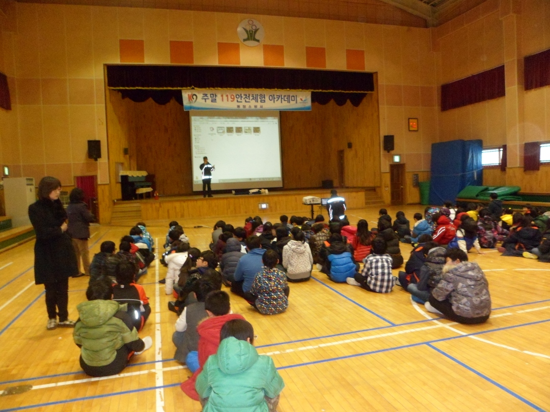 평창소방서(서장 김용락) 대관령119안전센터에서는 2012.12.15. 09:00 횡계초등학교 4,5,6학년(101명)을 대상으로 "주말 119안전체험 아카데미"를 개최하였다. 이날 학생들은 소화기 사용법 및 소방안전교육, 심폐소생술(CPR) 및 응급처치교육, 소방차량 및 화재진압 체험 등을 하면서 겨울철을 맞아 화재에 대한 기초상식, 불조심의 중요성 등 화재에 대한 경각심을 일깨우는 좋은 계기를 마련하였다