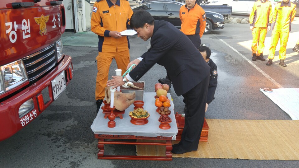 평창소방서(서장 : 정광현)는 28일 오후4시 진부119안전센터에서 신규펌프차량 안전기원제를 실시했다.
